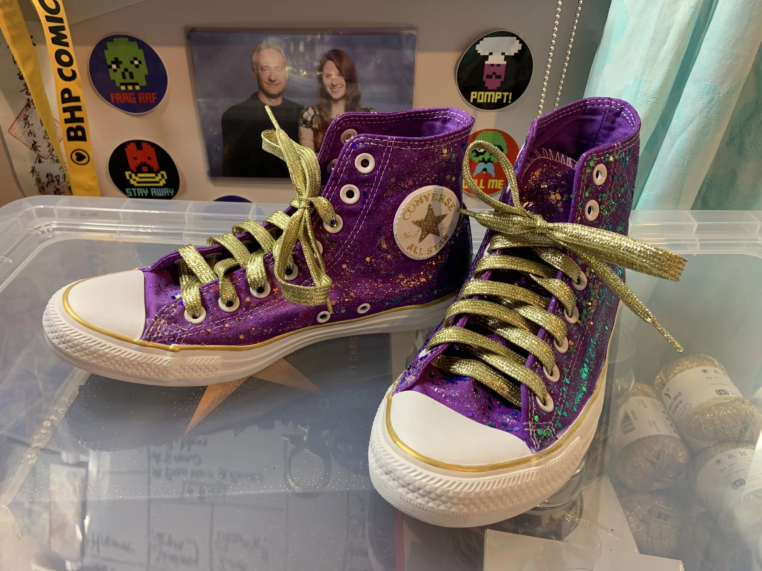 I added some gold shoelaces, et voila! Some sparkly dancing shoes!